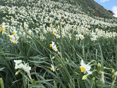 岬一面に広がる水仙の花と、目の前に広がる青い海の景色は、